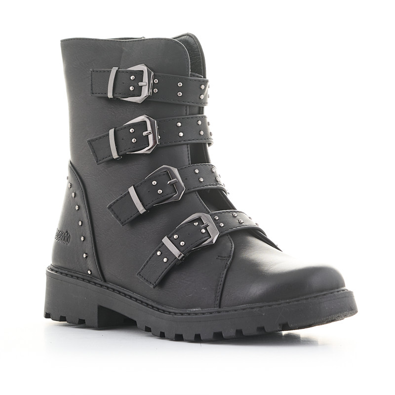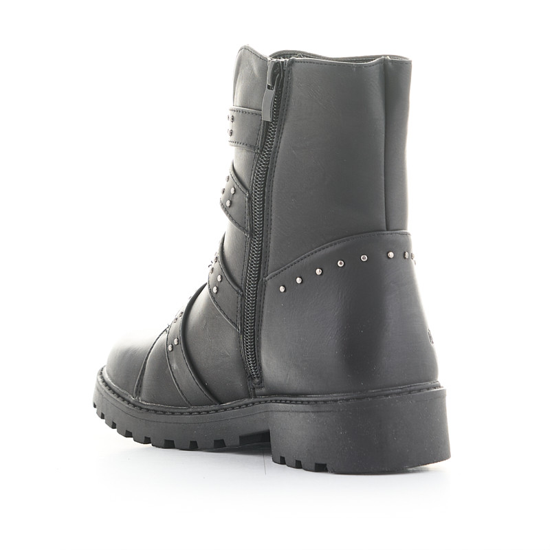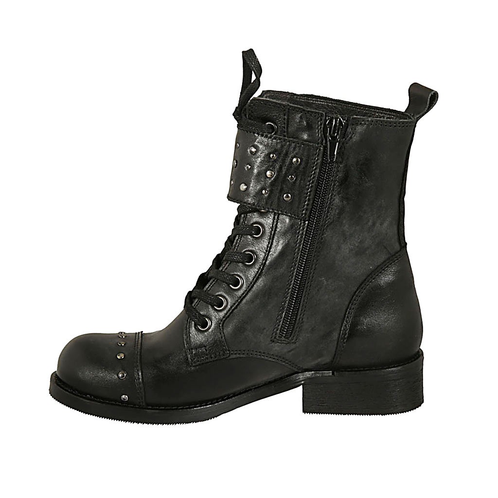 Botin para mujer con cordones, tachuelas, hebillas y cremallera en piel