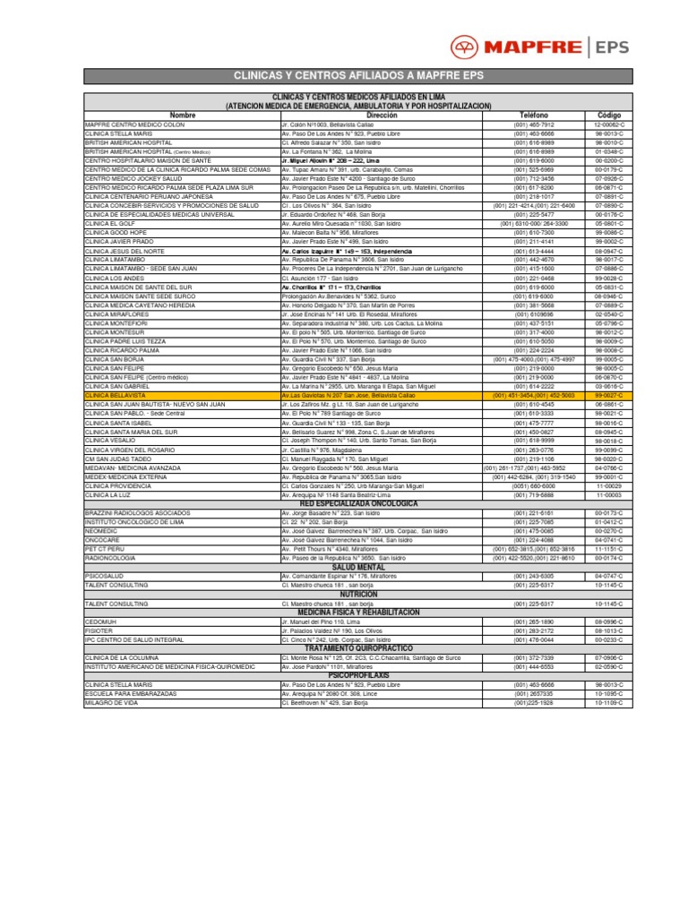 WebPalma Centro Médico MAPFRE Salud Pso. de Mallorca, 17 07011 - Palma (Baleares) 971222435 Valencia Centro Médico MAPFRE Salud Plaza de la Legión Española, 13. Web🥇 Cuadro Médico Mapfre General Las Palmas 2023 Descarga el [PDF] actualizado. Encuentra especialistas, centros, clínicas, doctores y médicos de tu provincia o ciudad:. WebEspecialidades MAPFRE Salud en Palma de Mallorca ciudad. Ventajas de utilizar Top Doctors para consultar el cuadro médico de Mapfre Salud: 1. Información: a través de.