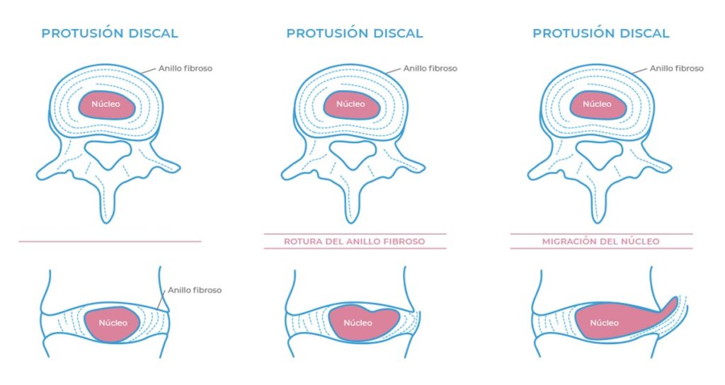WebComo digo, la diferencia con la protrusión es que en la hernia ya sí hay rotura de fibras del anillo, y se producirá desplazamiento del núcleo pulposo.. WebLa hernia discal. Si esta degeneración persiste y siguen degenerándose los anillos hasta romperse el último (el más externo), pasaría a llamarse hernia.