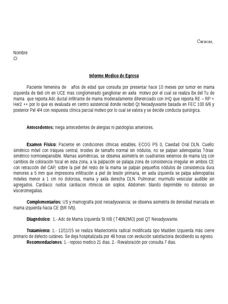 Webinforme mÉdico nombres y apellidos: rodolfo mendoza zegarra edad: 16 años fecha de ingreso: 04 de julio de 2012 1. ANAMNESIS: Paciente refiere que hace. WebInforme traumatologia 1. Informe Servicio de Traumatología. Mes de octubre y noviembre 2010. E.U. Mackarena Zapata M. E.U. Roxana Hernández I. 2. Tomamos como mes. WebExisten diversas plantillas y modelos de informes médicos disponibles para descargar, que pueden servirte de gran ayuda. Estas plantillas suelen estar diseñadas para cumplir.