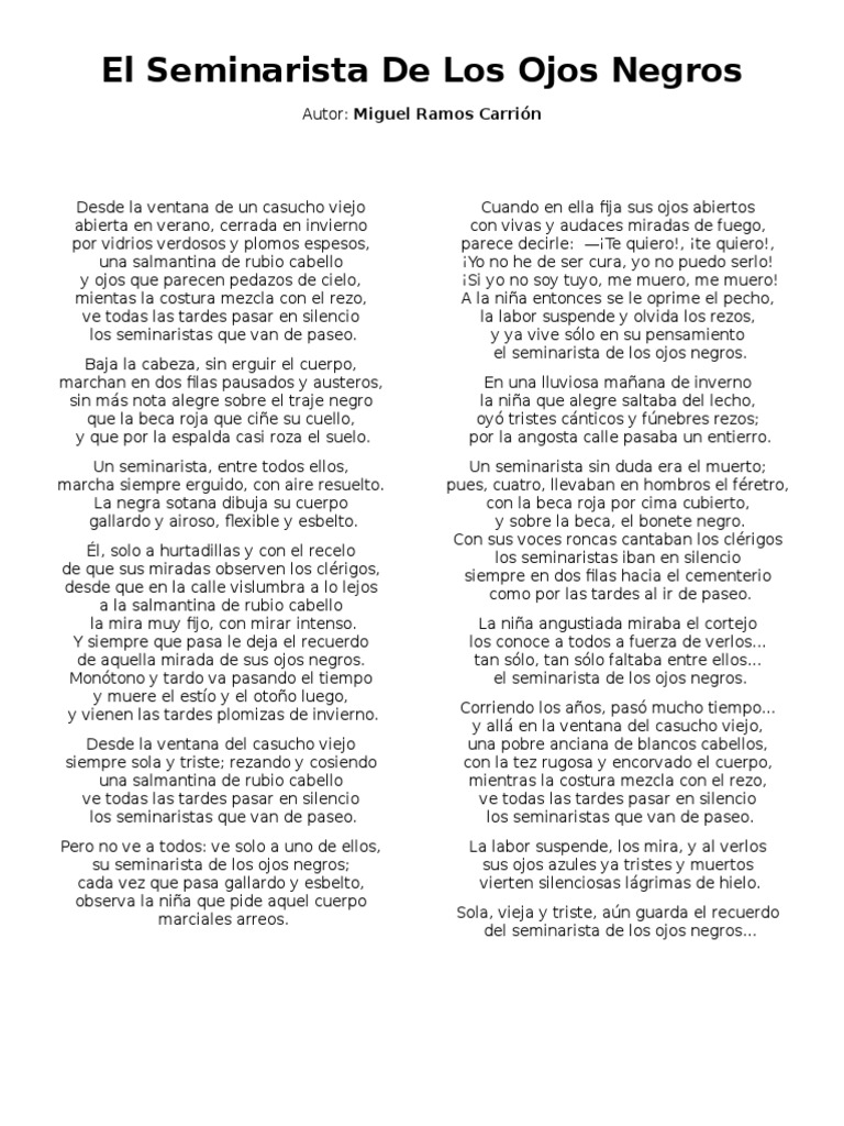 Poema El Seminarista De Los Ojos Negro Completo Letra - Consejos Ojos