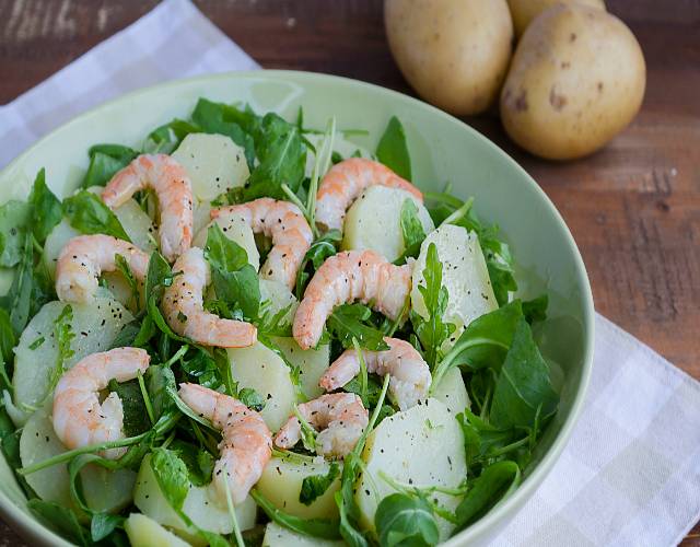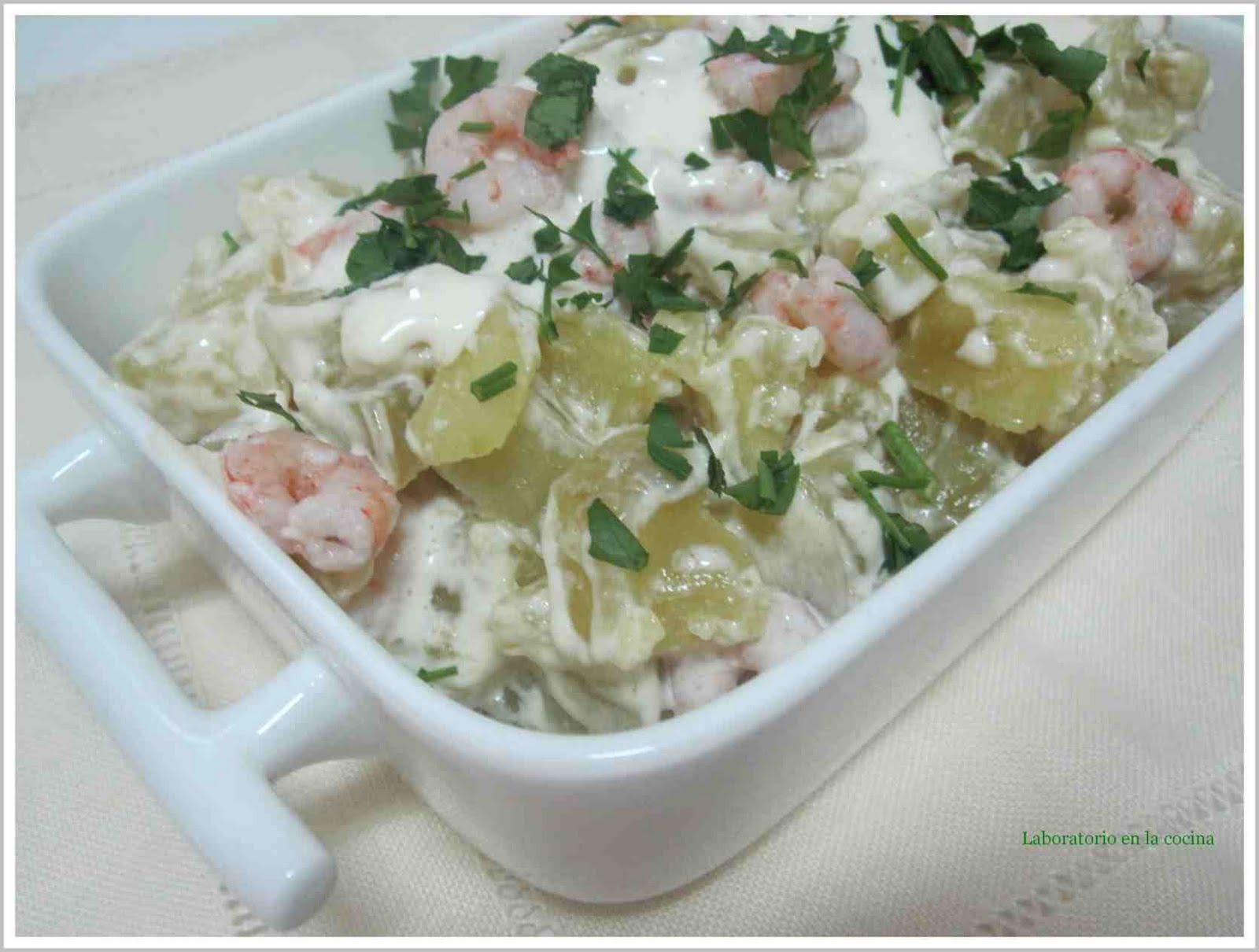 Ensalada de patatas, judías verdes y gambas - Mis Cosillas de Cocina