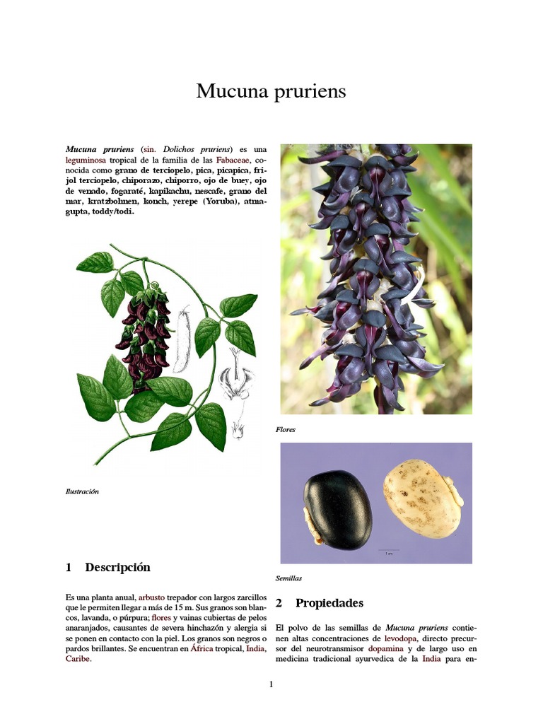WebLa Mucuna pruriens puede presentar contraindicaciones si se están tomando medicamentos. Si se están tomando IMAO (inhibidores de la monoaminooxidasa), la. WebMucuna pruriens es el nombre científico de una leguminosa tropical que es nativa de Asia y África. Estas semillas contienen nicotina, serotonina, lecitina, beta-sitosterol, ácidos. Webpruriens es una de las plantas que han demostrado ser activas contra el veneno de serpiente y para prevenir los efectos tóxicos, que se desencadenan.