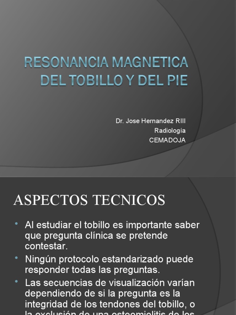 Resonancia De Pie Y Tobillo, , , , , , , 0, Anatomía de tobillo Resonancia M Parte 1 - YouTube, www.youtube.com, 1280 x 720, jpeg, Webevaluación de fracturas complejas. La resonancia magnética (RM) es la técnica de imagen de mayor utilidad en el diag-nóstico de las diferentes patologías del tobillo. WebCiento veinticinco (125) ortopedistas respondieron las encuestas (72.67%), 27 cirujanos de pie y tobillo (15.70%), 4 cirujanos de otras subespecialidades ortopédicas (2.33%) y 16. WebLa Resonancia de Tobillo se puede indicar a personas que padezcan las siguientes afecciones: Lesiones ligamentosas, síndrome de pinzamiento, lesiones tendinosas,., 20, resonancia-de-pie-y-tobillo, Novedades y Muebles Webevaluación de fracturas complejas. La resonancia magnética (RM) es la técnica de imagen de mayor utilidad en el diag-nóstico de las diferentes patologías del tobillo. WebCiento veinticinco (125) ortopedistas respondieron las encuestas (72.67%), 27 cirujanos de pie y tobillo (15.70%), 4 cirujanos de otras subespecialidades ortopédicas (2.33%) y 16. WebLa Resonancia de Tobillo se puede indicar a personas que padezcan las siguientes afecciones: Lesiones ligamentosas, síndrome de pinzamiento, lesiones tendinosas,.