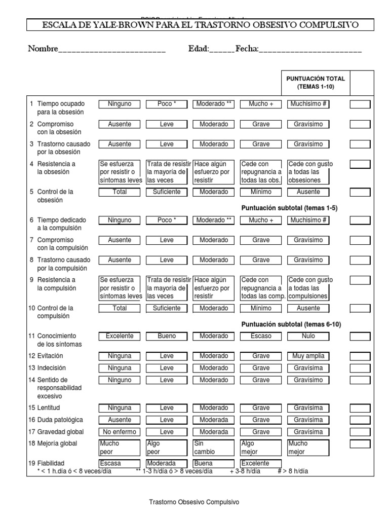 WebTest Diagnóstico del TOC CY-BOCS A continuación te presentamos un sistema de evaluación que te permitirá ver si es que presentas y en qué medida. WebEl trastorno obsesivo-compulsivo (TOC) es un trastorno de ansiedad compuesto de dos partes: obsesiones y compulsiones. El TOC es una condición genética crónica que.