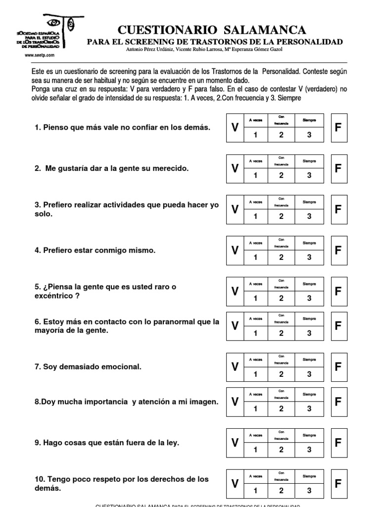 WebEl Test de TLP en 3 minutos se basa en un famoso y bien considerado inventario para la evaluación del concepto clínico del Trastorno Límite de la Personalidad, que es. WebEl trastorno límite de la personalidad es un trastorno de la salud mental que impacta la forma en que piensas y sientes acerca de ti mismo y de los demás, causando. WebEl Test de Trastorno Límite de la Personalidad (TLP) es una poderosa herramienta para evaluar el TLP y controlar la respuesta al tratamiento. Se utilizan criterios reconocidos.